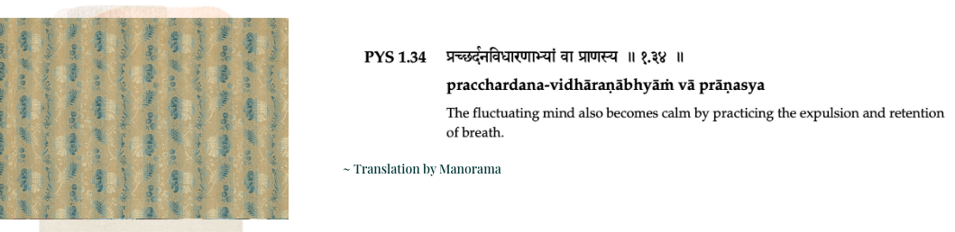 Všichni jsme asi zažili situace, kdy náš dech jasně odrážel stav naší mysli, například hněv se projevoval krátkými výdechy, smutek vzlyky, nervozita krátkými, rychlými a mělkými dechy nebo jakékoli jiné emoce. Patanjali nám v této sútře připomíná, že jednou z mnoha technik, které můžeme použít k uklidnění výkyvů našich myšlenek a pocitů, je vědomé dýchání. Jinými slovy, změnou vzorce dýchání můžete ovlivnit nervovou aktivitu v mozku a nervovém systému. Když se naše myšlenky uklidní, můžeme se otevřít vnímavosti a dosáhnout jasnosti.